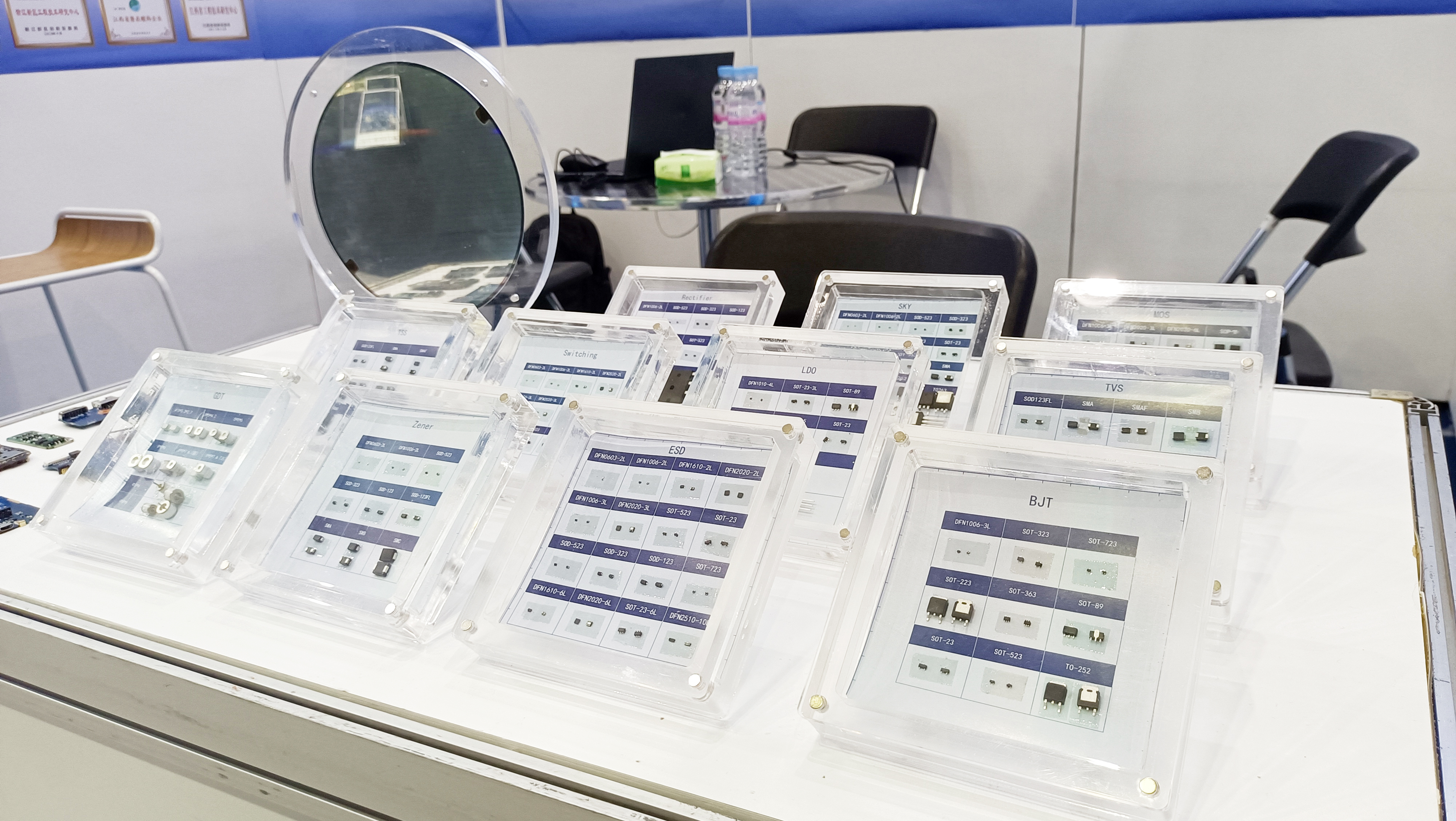 mile米乐微电子展示了多款主营产品,包括保护器件、二三极管和MOSFET、模拟IC等。